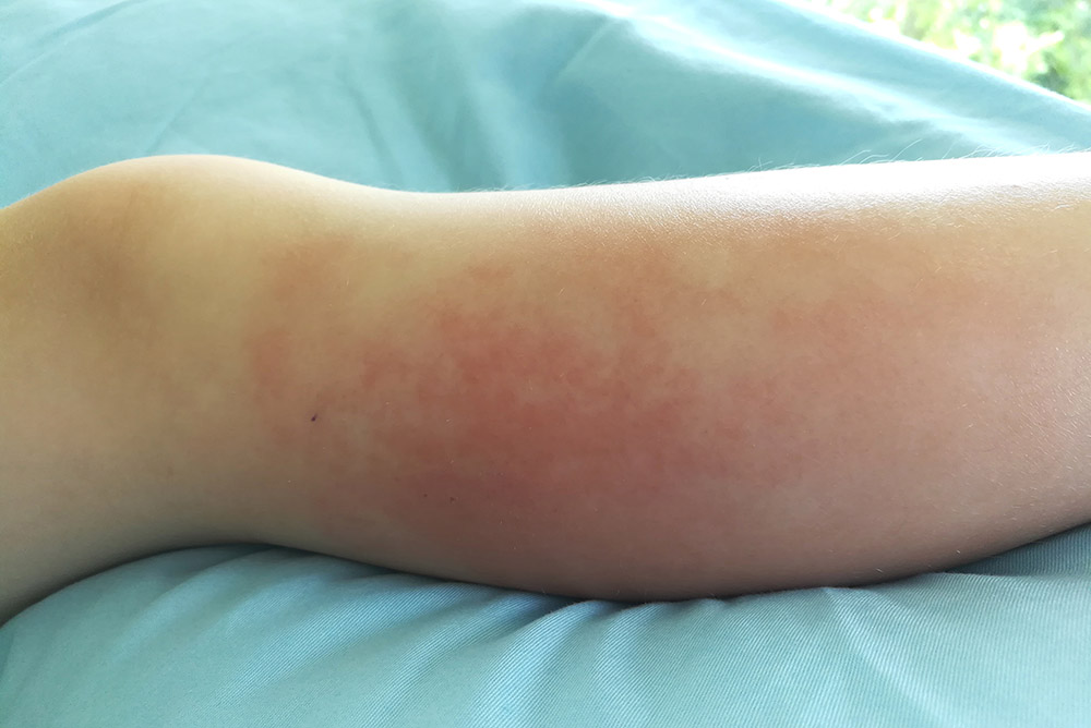 • Areas of the skin that become red and may expand outward