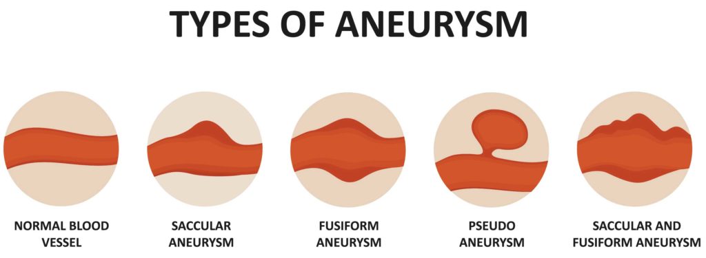 Shown above is a normal blood vessel, as well as several different types of possible aneurysms. Visceral artery aneurysms often manifest as pseudo aneurysms. This condition can be treated by a vascular professional like Dr. Bob Tahara, after comprehensive evaluation.